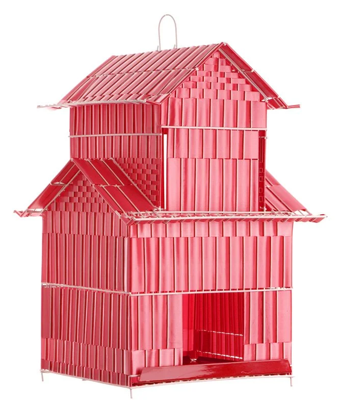 Following 9/11, the Homeland Security Advisory System employed color-coded threat levels, influencing both our perceptions and behaviors. In this work, I weave those colors onto five cages, reflecting how the system created invisible boundaries around daily life. The piece asks whether our pursuit of safety has confined us, limiting our freedom.